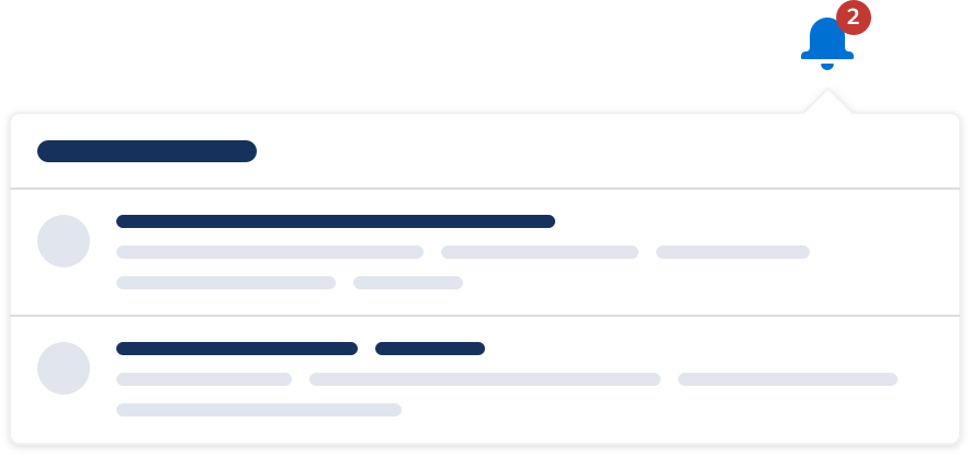 • Do not include multi-step actions in a notification item. Include only one-step actions, e.g. approve or reject, check off task, etc.