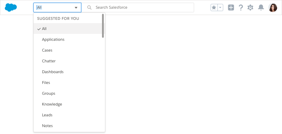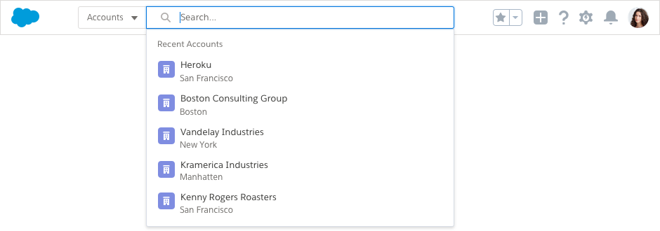Search is the most used feature in Salesforce, and users expect it to be fast, intelligent, and simple. With global search, users can get right to records and apps by entering simple keywords or using powerful advanced search features.